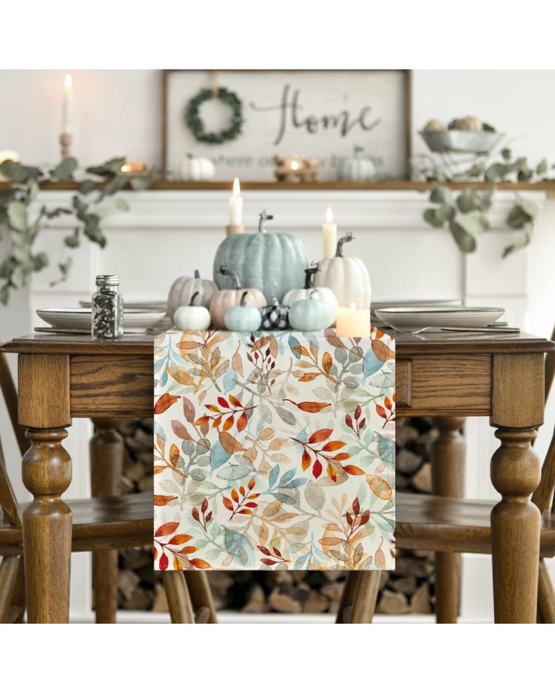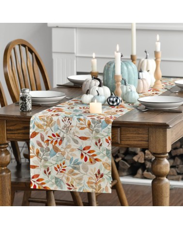 Picturesque leaves drift across a warm ivory base, revealing hues of pumpkin, cinnamon, cranberry, sage, and soft teal. The all-over print adds a dynamic and effortless seasonal charm to everyday dining and holiday gatherings.