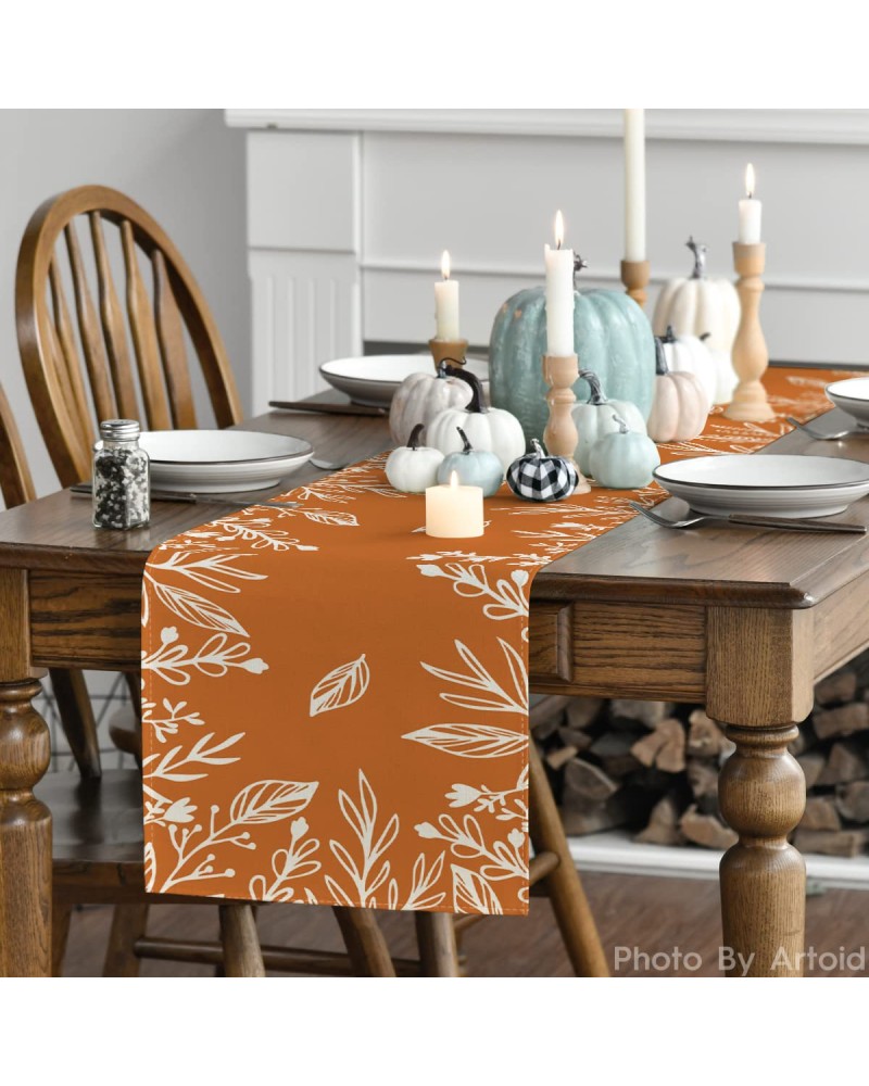 A bold pumpkin orange base creates a striking visual contrast against crisp white lines of leaves and branches. The flowing border and scattered pattern create a modern autumnal vibe that's cheerful and simple, perfect for everyday dining and seasonal gatherings.
